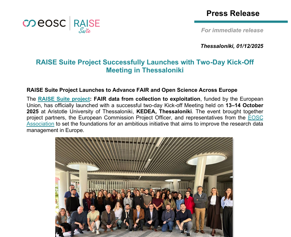 RAISE Suite kicks off in Thessaloniki and highlights its mission to advance research data management through the development of a one-stop-shop infrastructure….